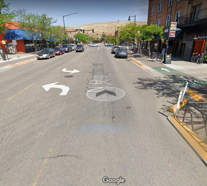 The picture on the left is N. Higgins. N. Higgins use to be a dangerous 4-lane design. The community came together and changed the street. We can do the same with sections to the south, from Broadway to Brooks. A 2-lane or 3-lane design improves traffic flow, allows for protected bike lanes and creates a pedestrian and people experience worthy of the hearth of Missoula .